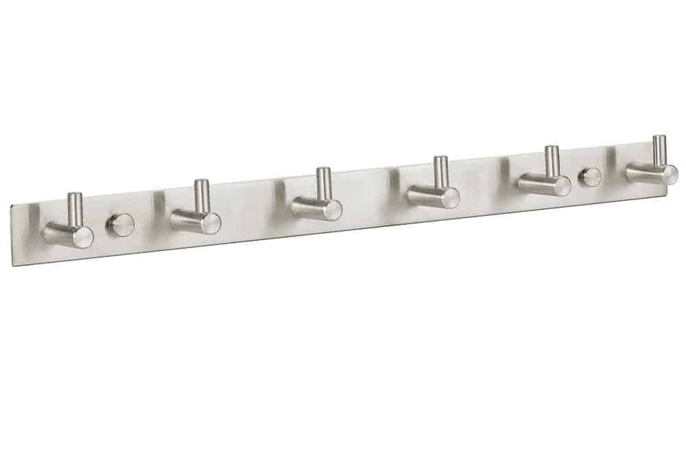 Het jas haken rekje HI-1506B is gemaakt van hoogwaardig 304 Roestvrij staal met een strakke mat afwerking. Het heeft 6 haken